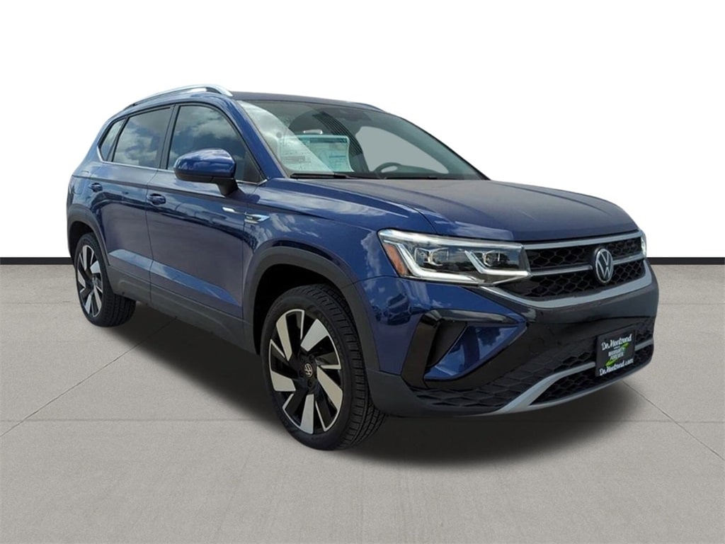 Our sales staff will help you find the vehicle that you've been searching for. We'd be happy to answer any questions that you may have. Stop by our dealership or give us a call for more information. This Taos 1.5T SEL is nicely equipped with 4-Wheel Disc Brakes, 5.20 Axle Ratio, 9 Speakers, ABS brakes, Active Blind Spot Monitor, Air Conditioning, Alloy wheels, AM/FM radio: SiriusXM with 360L, Auto High-beam Headlights, Auto-dimming Rear-View mirror, Automatic temperature control, Brake assist, Bumpers: body-color, Compass, Delay-off headlights, Driver door bin, Driver vanity mirror, Dual front impact airbags, Dual front side impact airbags, Electronic Stability Control, Emergency communication system: VW Car-Net Safe & Secure 5-year, Exterior Parking Camera Rear, Four wheel independent suspension, Front anti-roll bar, Front Bucket Seats, Front Center Armrest, Front dual zone A/C, Front reading lights, Front Strut Rear Multi-Link Suspension, Fully automatic headlights, Heated & Actively Ventilated Front Bucket Seats, Heated door mirrors, Heated front seats, Heated steering wheel, Illuminated entry, Leather Shift Knob, Low tire pressure warning, Navigation system: VW Car-Net Guide & Inform, Occupant sensing airbag, Outside temperature display, Overhead airbag, Overhead console, Panic alarm, Passenger door bin, Passenger vanity mirror, Perforated Vienna Leather Seating Surfaces, Power door mirrors, Power driver seat, Power moonroof, Power steering, Power windows, Radio data system, Radio: MIB3 Discover Media AM/FM/HD, Rain sensing wipers, Rear anti-roll bar, Rear Parking Sensors, Rear seat center armrest, Rear window defroster, Rear window wiper, Remote keyless entry, Security system, Speed control, Speed-sensing steering, Split folding rear seat, Spoiler, Steering wheel mounted audio controls, Tachometer, Telescoping steering wheel, Tilt steering wheel, Traction control, Trip computer, Variably intermittent wipers, Ventilated front seats, and Wheels: 19" 2-Tone Machined Alloy. 2024 Volkswagen Taos 1.5T SEL 4D Sport Utility Blue 24/32 City/Highway MPG