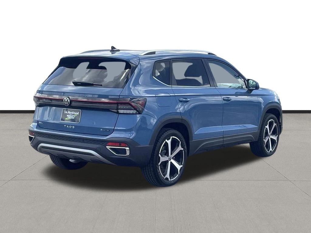 Our sales staff will help you find the vehicle that you've been searching for. We'd be happy to answer any questions that you may have. Stop by our dealership or give us a call for more information. This Taos 1.5T SEL is nicely equipped with 4-Wheel Disc Brakes, 6 Speakers, ABS brakes, Active Blind Spot Monitor, Air Conditioning, Alloy wheels, AM/FM radio: SiriusXM with 360L, Auto High-beam Headlights, Auto-dimming Rear-View mirror, Automatic temperature control, Brake assist, Bumpers: body-color, Compass, Delay-off headlights, Driver door bin, Driver vanity mirror, Dual front impact airbags, Dual front side impact airbags, Electronic Stability Control, Emergency communication system: VW Car-Net Safe & Secure 5-year, Exterior Parking Camera Rear, Four wheel independent suspension, Front anti-roll bar, Front Bucket Seats, Front Center Armrest, Front dual zone A/C, Front reading lights, Front Strut Rear Multi-Link Suspension, Fully automatic headlights, Heated & Actively Ventilated Front Bucket Seats, Heated door mirrors, Heated front seats, Heated steering wheel, Illuminated entry, Leather Shift Knob, Low tire pressure warning, Navigation system: VW Car-Net Guide & Inform, Occupant sensing airbag, Outside temperature display, Overhead airbag, Overhead console, Panic alarm, Passenger door bin, Passenger vanity mirror, Perforated Vienna Leather Seating Surfaces, Power door mirrors, Power driver seat, Power moonroof, Power steering, Power windows, Radio data system, Radio: MIB3 Discover Media AM/FM/HD, Rain sensing wipers, Rear anti-roll bar, Rear seat center armrest, Rear window defroster, Rear window wiper, Remote keyless entry, Security system, Speed control, Speed-sensing steering, Split folding rear seat, Spoiler, Steering wheel mounted audio controls, Tachometer, Telescoping steering wheel, Tilt steering wheel, Traction control, Trip computer, Variably intermittent wipers, Ventilated front seats, and Wheels: 19" 2-Tone Machined Alloy. 2025 Volkswagen Taos 1.5T SEL 4D Sport Utility Blue 25/33 City/Highway MPG Price includes: $4500 - Customer Bonus. Exp. 04/30/2026