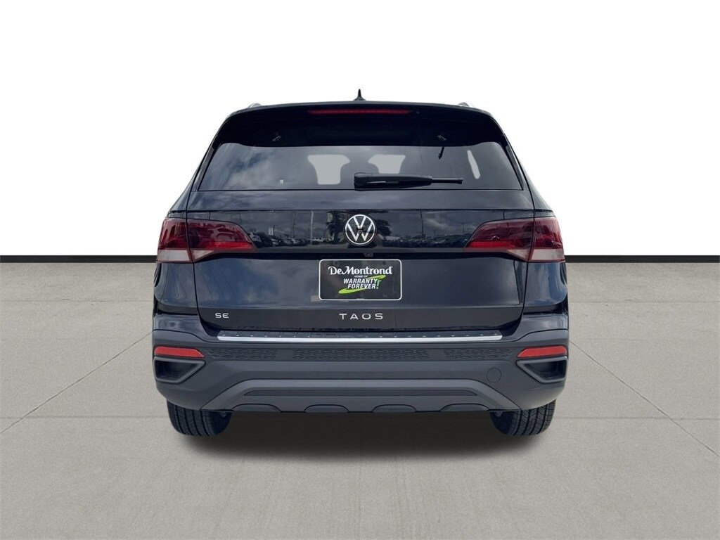 Our sales staff will help you find the vehicle that you've been searching for. We'd be happy to answer any questions that you may have. Stop by our dealership or give us a call for more information. This Taos 1.5T SE is nicely equipped with 3.23 Axle Ratio, 4-Wheel Disc Brakes, 6 Speakers, ABS brakes, Active Blind Spot Monitor, Air Conditioning, Alloy wheels, AM/FM radio: SiriusXM with 360L, Auto High-beam Headlights, Automatic temperature control, Brake assist, Bumpers: body-color, CloudTex & Cloth Seating Surfaces, Compass, Delay-off headlights, Driver door bin, Driver vanity mirror, Dual front impact airbags, Dual front side impact airbags, Electronic Stability Control, Emergency communication system: VW Car-Net Safe & Secure 5-year, Exterior Parking Camera Rear, Front anti-roll bar, Front Bucket Seats, Front Center Armrest, Front dual zone A/C, Front reading lights, Front Strut Rear Torsion Beam Suspension, Front wheel independent suspension, Fully automatic headlights, Heated door mirrors, Heated Front Bucket Seats, Heated front seats, Heated steering wheel, Illuminated entry, Leather Shift Knob, Low tire pressure warning, Occupant sensing airbag, Outside temperature display, Overhead airbag, Overhead console, Panic alarm, Passenger door bin, Passenger vanity mirror, Power door mirrors, Power driver seat, Power steering, Power windows, Radio data system, Radio: MIB3 Composition Media AM/FM/HD, Rain sensing wipers, Rear anti-roll bar, Rear seat center armrest, Rear window defroster, Rear window wiper, Remote keyless entry, Roof rack: rails only, Security system, Speed control, Speed-sensing steering, Split folding rear seat, Spoiler, Steering wheel mounted audio controls, Tachometer, Telescoping steering wheel, Tilt steering wheel, Traction control, Trip computer, Variably intermittent wipers, and Wheels: 18" 2-Tone Machined Alloy. 2024 Volkswagen Taos 1.5T SE 4D Sport Utility Black 28/36 City/Highway MPG