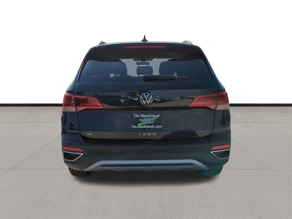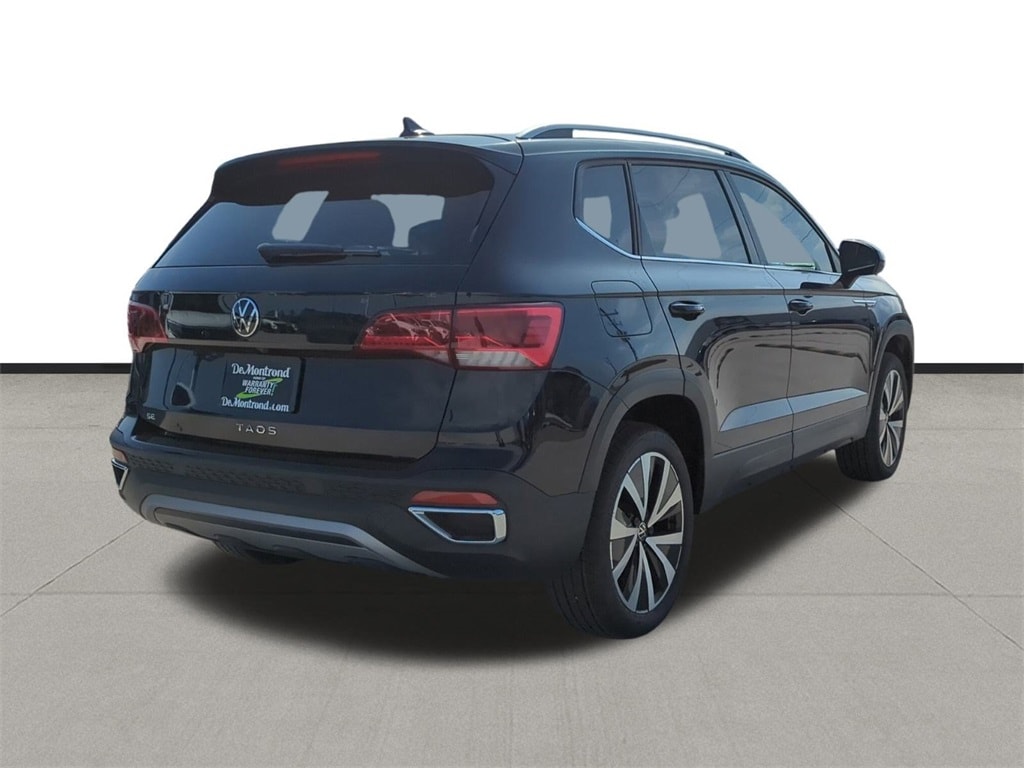 Our sales staff will help you find the vehicle that you've been searching for. We'd be happy to answer any questions that you may have. Stop by our dealership or give us a call for more information. This Taos 1.5T SE is nicely equipped with 3.23 Axle Ratio, 4-Wheel Disc Brakes, 6 Speakers, ABS brakes, Active Blind Spot Monitor, Air Conditioning, Alloy wheels, AM/FM radio: SiriusXM with 360L, Auto High-beam Headlights, Automatic temperature control, Brake assist, Bumpers: body-color, CloudTex & Cloth Seating Surfaces, Compass, Delay-off headlights, Driver door bin, Driver vanity mirror, Dual front impact airbags, Dual front side impact airbags, Electronic Stability Control, Emergency communication system: VW Car-Net Safe & Secure 5-year, Exterior Parking Camera Rear, Front anti-roll bar, Front Bucket Seats, Front Center Armrest, Front dual zone A/C, Front reading lights, Front Strut Rear Torsion Beam Suspension, Front wheel independent suspension, Fully automatic headlights, Heated door mirrors, Heated Front Bucket Seats, Heated front seats, Heated steering wheel, Illuminated entry, Leather Shift Knob, Low tire pressure warning, Occupant sensing airbag, Outside temperature display, Overhead airbag, Overhead console, Panic alarm, Passenger door bin, Passenger vanity mirror, Power door mirrors, Power driver seat, Power steering, Power windows, Radio data system, Radio: MIB3 Composition Media AM/FM/HD, Rain sensing wipers, Rear anti-roll bar, Rear seat center armrest, Rear window defroster, Rear window wiper, Remote keyless entry, Roof rack: rails only, Security system, Speed control, Speed-sensing steering, Split folding rear seat, Spoiler, Steering wheel mounted audio controls, Tachometer, Telescoping steering wheel, Tilt steering wheel, Traction control, Trip computer, Variably intermittent wipers, and Wheels: 18" 2-Tone Machined Alloy. 2024 Volkswagen Taos 1.5T SE 4D Sport Utility Black 28/36 City/Highway MPG