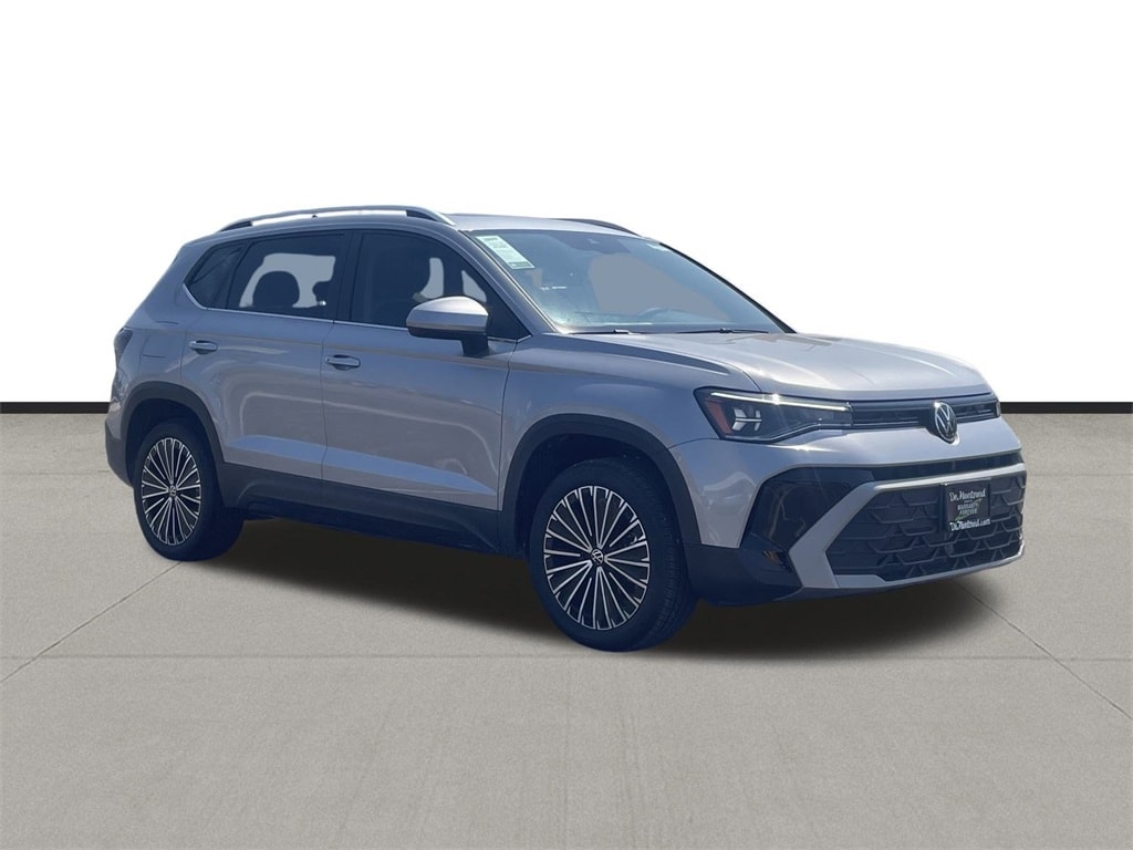 Our sales staff will help you find the vehicle that you've been searching for. We'd be happy to answer any questions that you may have. Stop by our dealership or give us a call for more information. This Taos 1.5T SE is nicely equipped with 4-Wheel Disc Brakes, 6 Speakers, ABS brakes, Active Blind Spot Monitor, Air Conditioning, Alloy wheels, AM/FM radio: SiriusXM with 360L, Auto High-beam Headlights, Automatic temperature control, Brake assist, Bumpers: body-color, CloudTex & Cloth Seating Surfaces, Compass, Delay-off headlights, Driver door bin, Driver vanity mirror, Dual front impact airbags, Dual front side impact airbags, Electronic Stability Control, Emergency communication system: VW Car-Net Safe & Secure 5-year, Exterior Parking Camera Rear, Front anti-roll bar, Front Bucket Seats, Front Center Armrest, Front dual zone A/C, Front reading lights, Front Strut Rear Torsion Beam Suspension, Front wheel independent suspension, Fully automatic headlights, Heated door mirrors, Heated Front Bucket Seats, Heated front seats, Heated steering wheel, Illuminated entry, Leather Shift Knob, Low tire pressure warning, Occupant sensing airbag, Outside temperature display, Overhead airbag, Overhead console, Panic alarm, Passenger door bin, Passenger vanity mirror, Power door mirrors, Power driver seat, Power steering, Power windows, Radio data system, Radio: MIB3 Composition Media AM/FM/HD, Rain sensing wipers, Rear anti-roll bar, Rear seat center armrest, Rear window defroster, Rear window wiper, Remote keyless entry, Security system, Speed control, Speed-sensing steering, Split folding rear seat, Spoiler, Steering wheel mounted audio controls, Tachometer, Telescoping steering wheel, Tilt steering wheel, Traction control, Trip computer, Variably intermittent wipers, and Wheels: 18" 2-Tone Machined Alloy. 2025 Volkswagen Taos 1.5T SE 4D Sport Utility Silver 28/36 City/Highway MPG Price includes: $500 - Retail Customer Bonus. Exp. 11/03/2025