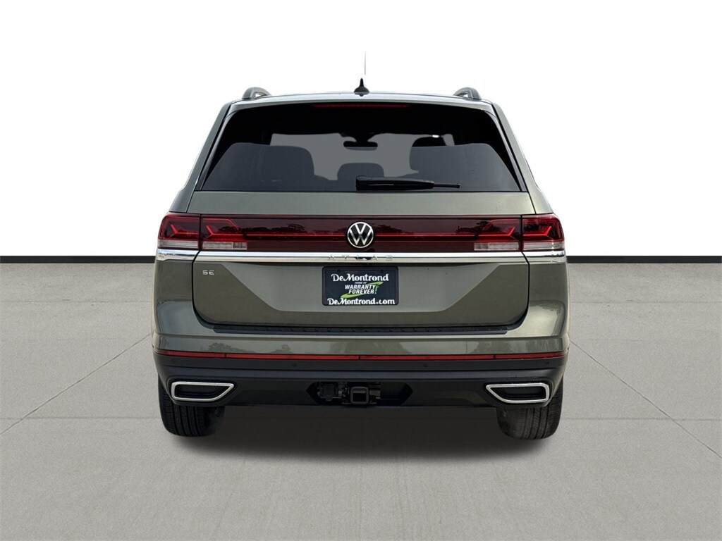 Our sales staff will help you find the vehicle that you've been searching for. We'd be happy to answer any questions that you may have. Stop by our dealership or give us a call for more information. This Atlas 2.0T SE w/Technology is nicely equipped with 3rd row seats: split-bench, 4-Wheel Disc Brakes, 4-Wheel Independent Suspension, 6 Speakers, ABS brakes, Air Conditioning, Alloy wheels, AM/FM radio: SiriusXM with 360L, Auto High-beam Headlights, Auto-dimming Rear-View mirror, Automatic temperature control, Brake assist, Bumpers: body-color, Compass, Delay-off headlights, Driver door bin, Driver vanity mirror, Dual front impact airbags, Dual front side impact airbags, Electronic Stability Control, Emergency communication system: VW Car-Net Safe & Secure 5-year, Exterior Parking Camera Rear, Four wheel independent suspension, Front anti-roll bar, Front Bucket Seats, Front Center Armrest, Front dual zone A/C, Front fog lights, Front reading lights, Fully automatic headlights, Garage door transmitter: HomeLink, Heated & Actively Ventilated Front Bucket Seats, Heated door mirrors, Heated front seats, Heated steering wheel, Illuminated entry, Low tire pressure warning, Occupant sensing airbag, Outside temperature display, Overhead airbag, Overhead console, Panic alarm, Passenger door bin, Passenger vanity mirror, Perforated V-Tex Leatherette Seating Surfaces, Power door mirrors, Power driver seat, Power Liftgate, Power steering, Power windows, Radio data system, Radio: MIB3 Composition Media, Rain sensing wipers, Rear air conditioning, Rear anti-roll bar, Rear reading lights, Rear seat center armrest, Rear window defroster, Rear window wiper, Remote keyless entry, Security system, Speed control, Speed-sensing steering, Split folding rear seat, Spoiler, Steering wheel mounted audio controls, Tachometer, Telescoping steering wheel, Tilt steering wheel, Traction control, Trip computer, Turn signal indicator mirrors, Variably intermittent wipers, Ventilated front seats, and Wheels: 20" 2-Tone Machined Alloy. 2026 Volkswagen Atlas 2.0T SE w/Technology 4D Sport Utility Green 20/26 City/Highway MPG Price includes: $3000 - Customer Bonus. Exp. 03/02/2026