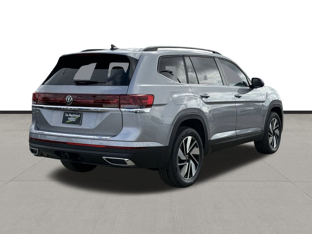 Our sales staff will help you find the vehicle that you've been searching for. We'd be happy to answer any questions that you may have. Stop by our dealership or give us a call for more information. This Atlas 2.0T SE w/Technology is nicely equipped with 3rd row seats: split-bench, 4-Wheel Disc Brakes, 4-Wheel Independent Suspension, 6 Speakers, ABS brakes, Air Conditioning, Alloy wheels, AM/FM radio: SiriusXM with 360L, Auto High-beam Headlights, Auto-dimming Rear-View mirror, Automatic temperature control, Brake assist, Bumpers: body-color, Compass, Delay-off headlights, Driver door bin, Driver vanity mirror, Dual front impact airbags, Dual front side impact airbags, Electronic Stability Control, Emergency communication system: VW Car-Net Safe & Secure 5-year, Exterior Parking Camera Rear, Four wheel independent suspension, Front anti-roll bar, Front Bucket Seats, Front Center Armrest, Front dual zone A/C, Front fog lights, Front reading lights, Fully automatic headlights, Garage door transmitter: HomeLink, Heated and Actively Ventilated Front Bucket Seats, Heated door mirrors, Heated front seats, Heated steering wheel, Illuminated entry, Low tire pressure warning, Occupant sensing airbag, Outside temperature display, Overhead airbag, Overhead console, Panic alarm, Passenger door bin, Passenger vanity mirror, Perforated V-Tex Leatherette Seating Surfaces, Power door mirrors, Power driver seat, Power Liftgate, Power steering, Power windows, Radio data system, Radio: MIB3 Composition Media, Rain sensing wipers, Rear air conditioning, Rear anti-roll bar, Rear reading lights, Rear seat center armrest, Rear window defroster, Rear window wiper, Remote keyless entry, Security system, Speed control, Speed-sensing steering, Split folding rear seat, Spoiler, Steering wheel mounted audio controls, Tachometer, Telescoping steering wheel, Tilt steering wheel, Traction control, Trip computer, Turn signal indicator mirrors, Variably intermittent wipers, Ventilated front seats, and Wheels: 20" 2-Tone Machined Alloy. 2026 Volkswagen Atlas 2.0T SE w/Technology 4D Sport Utility Silver 20/27 City/Highway MPG Price includes: $1000 - Customer Bonus. Exp. 04/30/2026