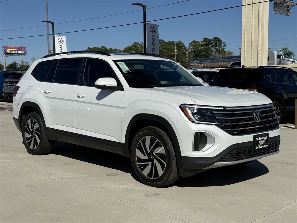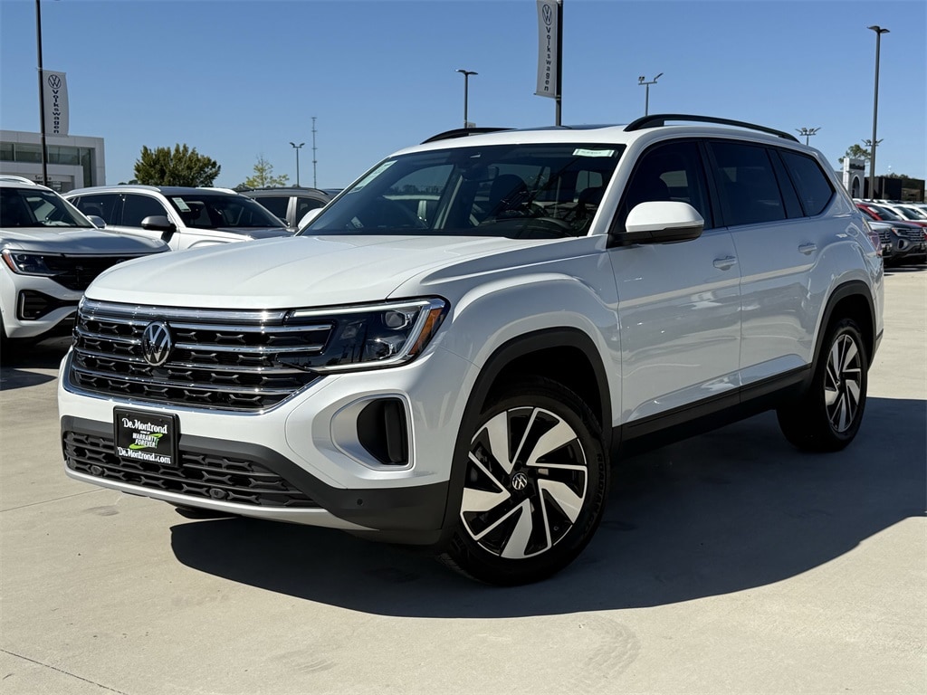Our sales staff will help you find the vehicle that you've been searching for. We'd be happy to answer any questions that you may have. Stop by our dealership or give us a call for more information. This Atlas 2.0T SE w/Technology is nicely equipped with 3rd row seats: split-bench, 4-Wheel Disc Brakes, 6 Speakers, ABS brakes, Air Conditioning, Alloy wheels, AM/FM radio: SiriusXM with 360L, Auto High-beam Headlights, Auto-dimming Rear-View mirror, Automatic temperature control, Brake assist, Bumpers: body-color, Compass, Delay-off headlights, Driver door bin, Driver vanity mirror, Dual front impact airbags, Dual front side impact airbags, Electronic Stability Control, Emergency communication system, Exterior Parking Camera Rear, Four wheel independent suspension, Four-wheel Independent Suspension, Front anti-roll bar, Front Bucket Seats, Front Center Armrest, Front dual zone A/C, Front fog lights, Front reading lights, Fully automatic headlights, Garage door transmitter: HomeLink Connect, Heated & Actively Ventilated Front Bucket Seats, Heated door mirrors, Heated front seats, Heated steering wheel, Illuminated entry, Low tire pressure warning, Occupant sensing airbag, Outside temperature display, Overhead airbag, Overhead console, Panic alarm, Passenger door bin, Passenger vanity mirror, Perforated V-Tex Leatherette Seating Surfaces, Power door mirrors, Power driver seat, Power Liftgate, Power steering, Power windows, Radio data system, Radio: MIB3 Composition Media, Rain sensing wipers, Rear air conditioning, Rear anti-roll bar, Rear reading lights, Rear seat center armrest, Rear window defroster, Rear window wiper, Remote keyless entry, Security system, Speed control, Speed-sensing steering, Split folding rear seat, Spoiler, Steering wheel mounted audio controls, Tachometer, Telescoping steering wheel, Tilt steering wheel, Traction control, Trip computer, Turn signal indicator mirrors, Variably intermittent wipers, Ventilated front seats, and Wheels: 20" 2-Tone Machined Alloy. 2026 Volkswagen Atlas 2.0T SE w/Technology 4D Sport Utility White 20/26 City/Highway MPG Price includes: $1500 - Retail Customer Bonus. Exp. 01/05/2026