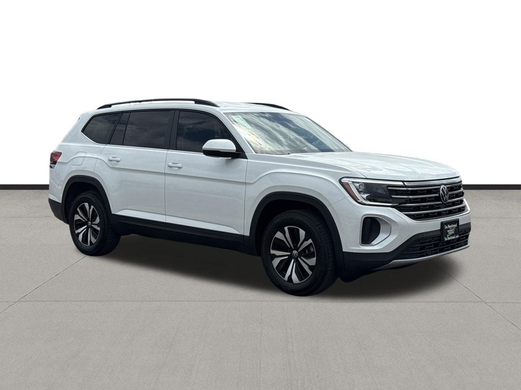 Our sales staff will help you find the vehicle that you've been searching for. We'd be happy to answer any questions that you may have. Stop by our dealership or give us a call for more information. This Atlas 2.0T SE is nicely equipped with 3rd row seats: split-bench, 4-Wheel Disc Brakes, 4-Wheel Independent Suspension, 6 Speakers, ABS brakes, Air Conditioning, Alloy wheels, AM/FM radio: SiriusXM with 360L, Auto High-beam Headlights, Auto-dimming Rear-View mirror, Automatic temperature control, Brake assist, Bumpers: body-color, Delay-off headlights, Driver door bin, Driver vanity mirror, Dual front impact airbags, Dual front side impact airbags, Electronic Stability Control, Emergency communication system: VW Car-Net Safe & Secure 5-year, Exterior Parking Camera Rear, Four wheel independent suspension, Front anti-roll bar, Front Bucket Seats, Front Center Armrest, Front dual zone A/C, Front fog lights, Front reading lights, Fully automatic headlights, Heated and Actively Ventilated Front Bucket Seats, Heated door mirrors, Heated front seats, Heated steering wheel, Illuminated entry, Low tire pressure warning, Occupant sensing airbag, Outside temperature display, Overhead airbag, Overhead console, Panic alarm, Passenger door bin, Passenger vanity mirror, Perforated V-Tex Leatherette Seating Surfaces, Power door mirrors, Power driver seat, Power steering, Power windows, Radio data system, Radio: MIB3 Composition Media, Rain sensing wipers, Rear air conditioning, Rear anti-roll bar, Rear reading lights, Rear seat center armrest, Rear window defroster, Rear window wiper, Remote keyless entry, Security system, Speed control, Speed-sensing steering, Split folding rear seat, Spoiler, Steering wheel mounted audio controls, Tachometer, Telescoping steering wheel, Tilt steering wheel, Traction control, Trip computer, Turn signal indicator mirrors, Variably intermittent wipers, Ventilated front seats, and Wheels: 18" 2-Tone Machined Alloy. 2026 Volkswagen Atlas 2.0T SE 4D Sport Utility White 20/27 City/Highway MPG Price includes: $1000 - Customer Bonus. Exp. 04/30/2026