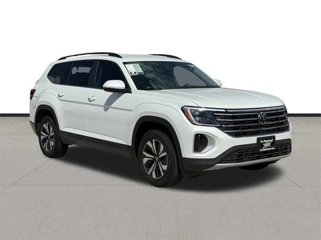 Our sales staff will help you find the vehicle that you've been searching for. We'd be happy to answer any questions that you may have. Stop by our dealership or give us a call for more information. This Atlas 2.0T SE is nicely equipped with 3rd row seats: split-bench, 4-Wheel Disc Brakes, 6 Speakers, ABS brakes, Air Conditioning, Alloy wheels, AM/FM radio: SiriusXM with 360L, Auto High-beam Headlights, Auto-dimming Rear-View mirror, Automatic temperature control, Brake assist, Bumpers: body-color, Compass, Delay-off headlights, Driver door bin, Driver vanity mirror, Dual front impact airbags, Dual front side impact airbags, Electronic Stability Control, Emergency communication system: VW Car-Net Safe & Secure 5-year, Exterior Parking Camera Rear, Four wheel independent suspension, Four-wheel Independent Suspension, Front anti-roll bar, Front Bucket Seats, Front Center Armrest, Front dual zone A/C, Front fog lights, Front reading lights, Fully automatic headlights, Heated & Actively Ventilated Front Bucket Seats, Heated door mirrors, Heated front seats, Heated steering wheel, Illuminated entry, Low tire pressure warning, Occupant sensing airbag, Outside temperature display, Overhead airbag, Overhead console, Panic alarm, Passenger door bin, Passenger vanity mirror, Perforated V-Tex Leatherette Seating Surfaces, Power door mirrors, Power driver seat, Power steering, Power windows, Radio data system, Radio: MIB3 Composition Media, Rain sensing wipers, Rear air conditioning, Rear anti-roll bar, Rear reading lights, Rear seat center armrest, Rear window defroster, Rear window wiper, Remote keyless entry, Security system, Speed control, Speed-sensing steering, Split folding rear seat, Spoiler, Steering wheel mounted audio controls, Tachometer, Telescoping steering wheel, Tilt steering wheel, Traction control, Trip computer, Turn signal indicator mirrors, Variably intermittent wipers, Ventilated front seats, and Wheels: 18" 2-Tone Machined Alloy. 2026 Volkswagen Atlas 2.0T SE 4D Sport Utility Opal White 20/26 City/Highway MPG Price includes: $1000 - Retail Customer Bonus. Exp. 11/03/2025