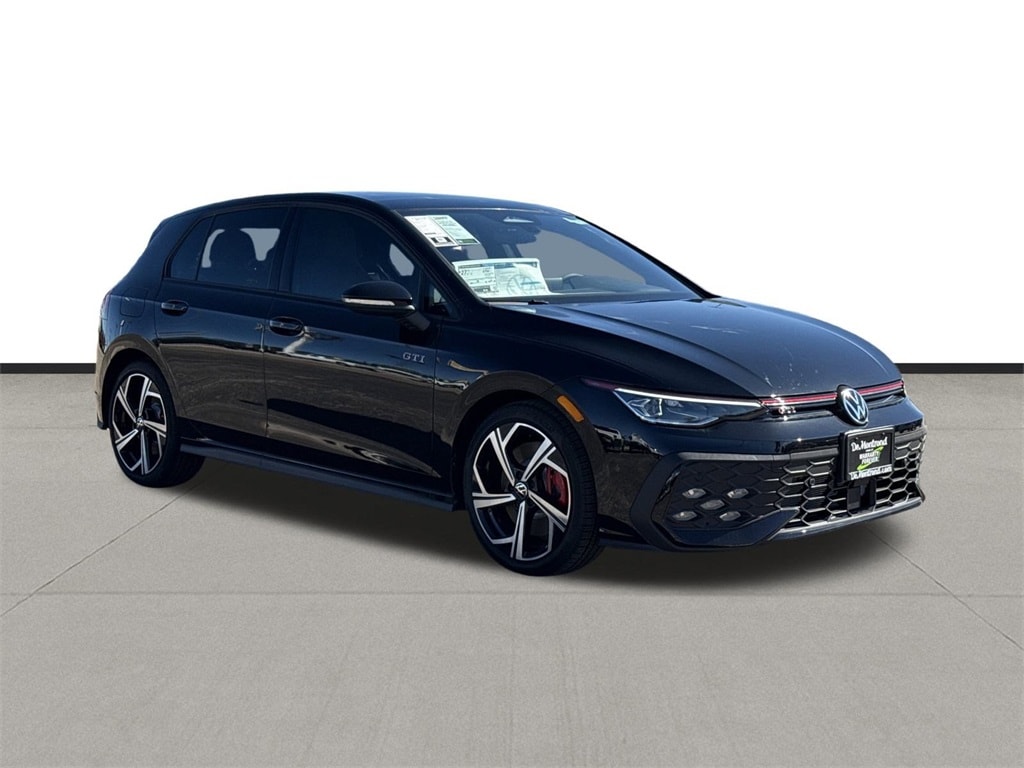 Our sales staff will help you find the vehicle that you've been searching for. We'd be happy to answer any questions that you may have. Stop by our dealership or give us a call for more information. This Golf GTI 2.0T SE is nicely equipped with 4-Wheel Disc Brakes, 9 Speakers, ABS brakes, Air Conditioning, Alloy wheels, AM/FM radio: SiriusXM with 360L, ArtVelours Seating Surfaces, Auto High-beam Headlights, Auto-dimming Rear-View mirror, Automatic temperature control, Brake assist, Bumpers: body-color, Compass, Delay-off headlights, Driver door bin, Driver vanity mirror, Dual front impact airbags, Dual front side impact airbags, Electronic Stability Control, Emergency communication system: VW Car-Net Safe & Secure 5-year, Exterior Parking Camera Rear, Forward collision: FCW w/Autonomous Emergency Braking mitigation, Four wheel independent suspension, Front anti-roll bar, Front Bucket Seats, Front Center Armrest, Front fog lights, Front reading lights, Fully automatic headlights, harman/kardon® Speakers, Heated door mirrors, Heated front seats, Heated Front Top Sport Seats, Heated steering wheel, Illuminated entry, Leather steering wheel, Low tire pressure warning, Navigation System, Occupant sensing airbag, Outside temperature display, Overhead airbag, Overhead console, Panic alarm, Passenger door bin, Passenger vanity mirror, Power door mirrors, Power driver seat, Power moonroof: Panoramic, Power passenger seat, Power steering, Power windows, Radio data system, Radio: MIB3 Discover Pro AM/FM/HD w/12.9" Touchscreen Navigation, Rain sensing wipers, Rear anti-roll bar, Rear reading lights, Rear seat center armrest, Rear window defroster, Rear window wiper, Remote keyless entry, Security system, Speed control, Speed-sensing steering, Speed-Sensitive Wipers, Split folding rear seat, Spoiler, Sport steering wheel, Steering wheel mounted audio controls, Tachometer, Telescoping steering wheel, Tilt steering wheel, Traction control, Trip computer, Turn signal indicator mirrors, Variably intermittent wipers, and Wheels: 18" 2-Tone Diamond-Turned Alloy. 2026 Volkswagen Golf GTI 2.0T SE 4D Hatchback Black 24/32 City/Highway MPG