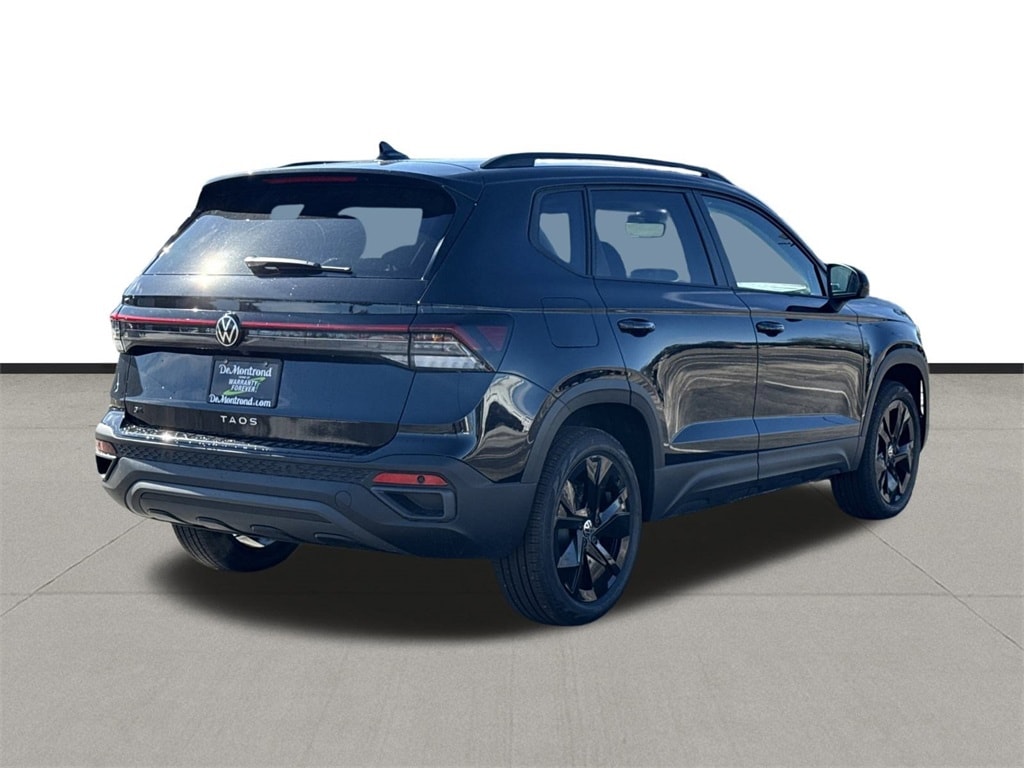 Our sales staff will help you find the vehicle that you've been searching for. We'd be happy to answer any questions that you may have. Stop by our dealership or give us a call for more information. This Taos 1.5T SE Black is nicely equipped with 4-Wheel Disc Brakes, 6 Speakers, ABS brakes, Active Blind Spot Monitor, Air Conditioning, Alloy wheels, AM/FM radio: SiriusXM with 360L, Auto High-beam Headlights, Automatic temperature control, Brake assist, Bumpers: body-color, Cloudtex and Cloth Seating Surfaces, Compass, Delay-off headlights, Driver door bin, Driver vanity mirror, Dual front impact airbags, Dual front side impact airbags, Electronic Stability Control, Emergency communication system: VW Car-Net Safe & Secure 5-year, Exterior Parking Camera Rear, Front anti-roll bar, Front Bucket Seats, Front Center Armrest, Front dual zone A/C, Front reading lights, Front Strut Rear Torsion Beam Suspension, Front wheel independent suspension, Fully automatic headlights, Heated door mirrors, Heated Front Bucket Seats, Heated front seats, Heated steering wheel, Illuminated entry, Leather Shift Knob, Low tire pressure warning, Occupant sensing airbag, Outside temperature display, Overhead airbag, Overhead console, Panic alarm, Passenger door bin, Passenger vanity mirror, Power door mirrors, Power driver seat, Power moonroof, Power steering, Power windows, Radio data system, Radio: MIB3 Composition Media AM/FM/HD, Rain sensing wipers, Rear anti-roll bar, Rear seat center armrest, Rear window defroster, Rear window wiper, Remote keyless entry, Security system, Speed control, Speed-sensing steering, Split folding rear seat, Spoiler, Steering wheel mounted audio controls, Tachometer, Telescoping steering wheel, Tilt steering wheel, Traction control, Trip computer, Variably intermittent wipers, and Wheels: 18" Black Painted Alloy. 2026 Volkswagen Taos 1.5T SE Black 4D Sport Utility Black 28/36 City/Highway MPG Price includes: $500 - Customer Bonus. Exp. 03/02/2026