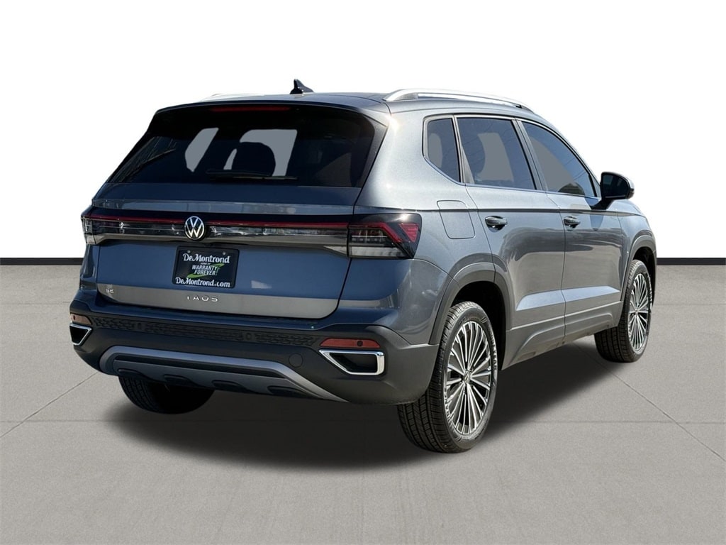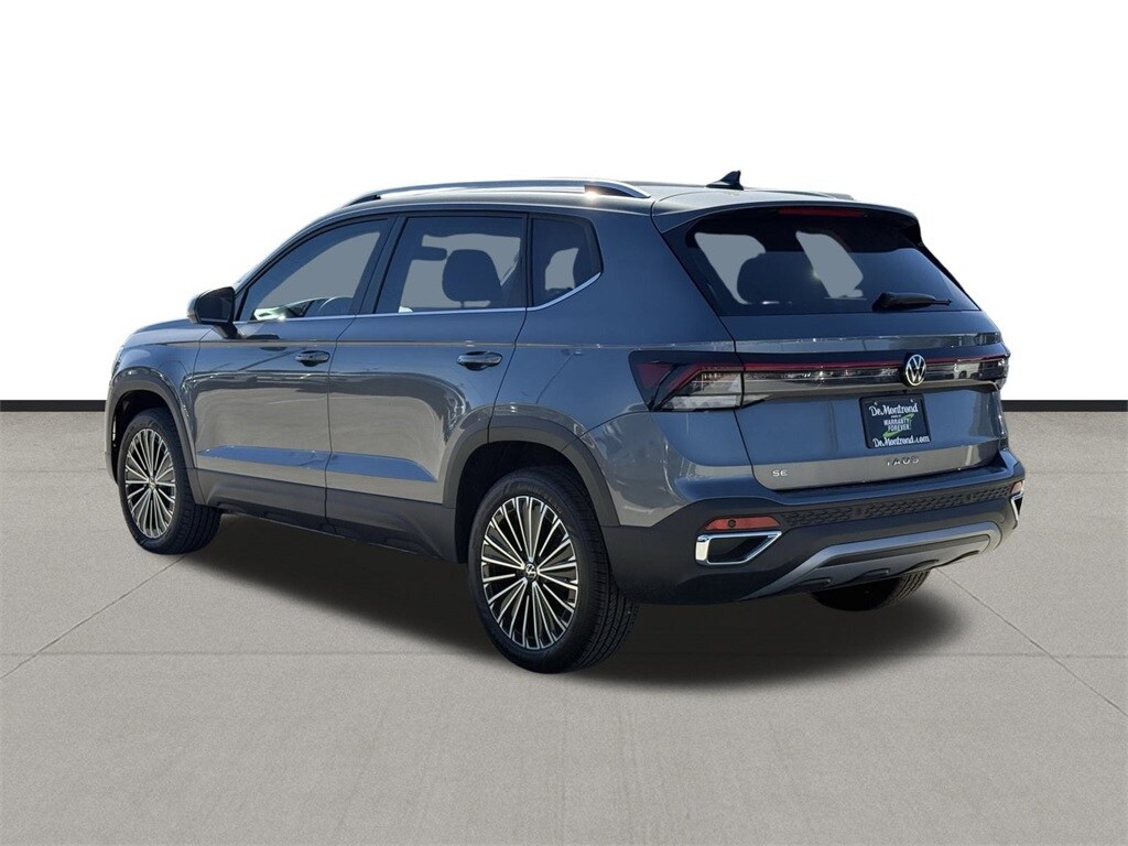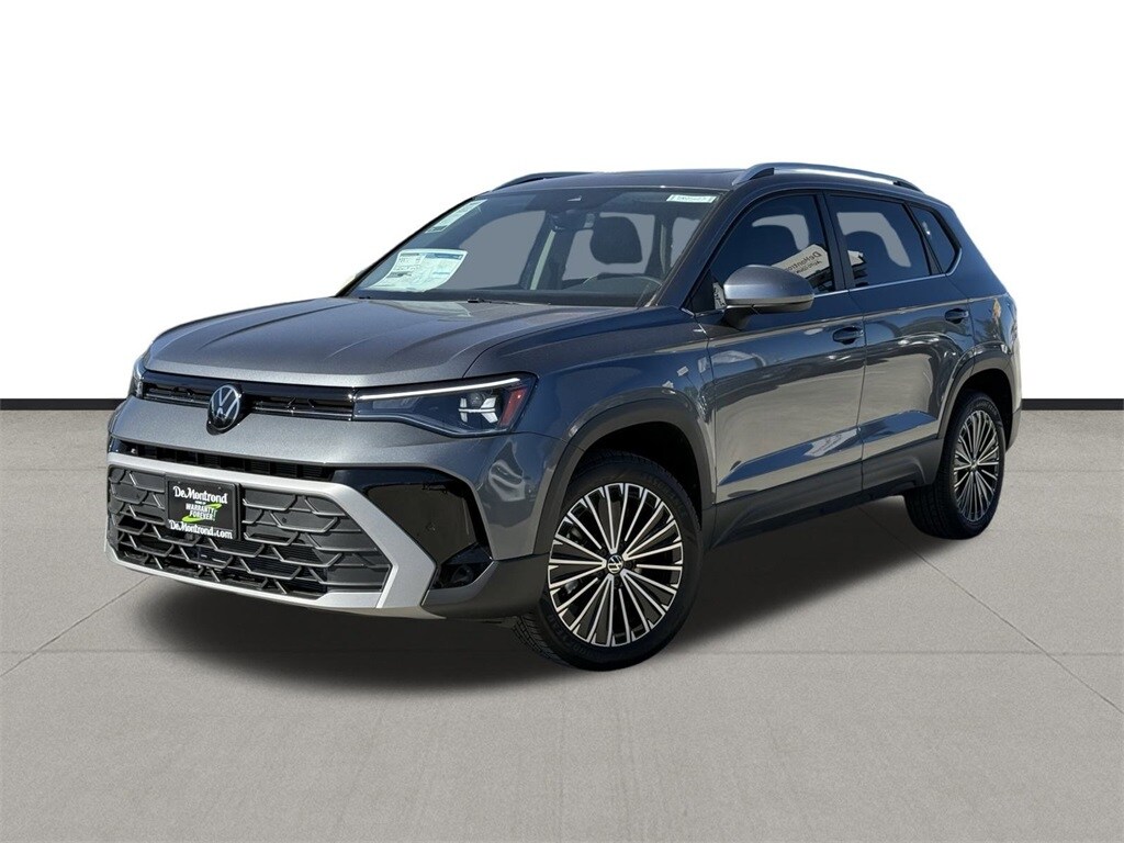 Our sales staff will help you find the vehicle that you've been searching for. We'd be happy to answer any questions that you may have. Stop by our dealership or give us a call for more information. This Taos 1.5T SE is nicely equipped with 4-Wheel Disc Brakes, 6 Speakers, ABS brakes, Active Blind Spot Monitor, Air Conditioning, Alloy wheels, AM/FM radio: SiriusXM with 360L, Auto High-beam Headlights, Automatic temperature control, Brake assist, Bumpers: body-color, Cloudtex and Cloth Seating Surfaces, Compass, Delay-off headlights, Driver door bin, Driver vanity mirror, Dual front impact airbags, Dual front side impact airbags, Electronic Stability Control, Emergency communication system: VW Car-Net Safe & Secure 5-year, Exterior Parking Camera Rear, Front anti-roll bar, Front Bucket Seats, Front Center Armrest, Front dual zone A/C, Front reading lights, Front Strut Rear Torsion Beam Suspension, Front wheel independent suspension, Fully automatic headlights, Heated door mirrors, Heated Front Bucket Seats, Heated front seats, Heated steering wheel, Illuminated entry, Leather Shift Knob, Low tire pressure warning, Occupant sensing airbag, Outside temperature display, Overhead airbag, Overhead console, Panic alarm, Passenger door bin, Passenger vanity mirror, Power door mirrors, Power driver seat, Power steering, Power windows, Radio data system, Radio: MIB3 Composition Media AM/FM/HD, Rain sensing wipers, Rear anti-roll bar, Rear seat center armrest, Rear window defroster, Rear window wiper, Remote keyless entry, Security system, Speed control, Speed-sensing steering, Split folding rear seat, Spoiler, Steering wheel mounted audio controls, Tachometer, Telescoping steering wheel, Tilt steering wheel, Traction control, Trip computer, Variably intermittent wipers, and Wheels: 18" 2-Tone Machined Alloy. 2026 Volkswagen Taos 1.5T SE 4D Sport Utility Gray 28/36 City/Highway MPG Price includes: $500 - Retail Customer Bonus. Exp. 02/02/2026