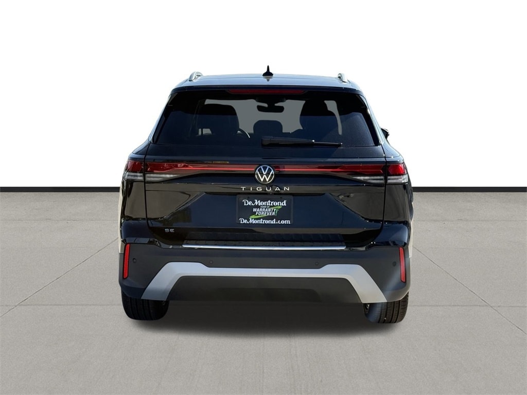 Our sales staff will help you find the vehicle that you've been searching for. We'd be happy to answer any questions that you may have. Stop by our dealership or give us a call for more information. This Tiguan 2.0T SE is nicely equipped with 4-Wheel Disc Brakes, 4-Wheel Independent Suspension, 7 Speakers, ABS brakes, Air Conditioning, Alloy wheels, AM/FM radio: SiriusXM with 360L, Auto High-beam Headlights, Auto-dimming Rear-View mirror, Automatic temperature control, Brake assist, Bumpers: body-color, Compass, Delay-off headlights, Driver door bin, Driver vanity mirror, Dual front impact airbags, Dual front side impact airbags, Electronic Stability Control, Emergency communication system, Exterior Parking Camera Rear, Four wheel independent suspension, Front anti-roll bar, Front Bucket Seats, Front Center Armrest, Front dual zone A/C, Front reading lights, Fully automatic headlights, Heated door mirrors, Heated Front Seats, Heated front seats, Illuminated entry, Knee airbag, Leather Shift Knob, Low tire pressure warning, Occupant sensing airbag, Outside temperature display, Overhead airbag, Overhead console, Panic alarm, Passenger door bin, Passenger vanity mirror, Perforated V-Tex Leatherette Seating Surfaces, Power door mirrors, Power driver seat, Power Liftgate, Power steering, Power windows, Radio data system, Radio: MIB4 Composition Media Touchscreen with AM/FM, Rain sensing wipers, Rear anti-roll bar, Rear reading lights, Rear seat center armrest, Rear side impact airbag, Rear window defroster, Rear window wiper, Remote keyless entry, Security system, Speed control, Speed-sensing steering, Split folding rear seat, Spoiler, Steering wheel mounted audio controls, Tachometer, Telescoping steering wheel, Tilt steering wheel, Traction control, Trip computer, Turn signal indicator mirrors, Variably intermittent wipers, and Wheels: 19" 2-Tone Machined Alloy. 2026 Volkswagen Tiguan 2.0T SE 4D Sport Utility Black 25/32 City/Highway MPG Price includes: $1000 - Retail Customer Bonus. Exp. 01/04/2026