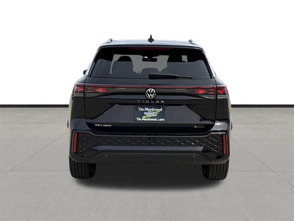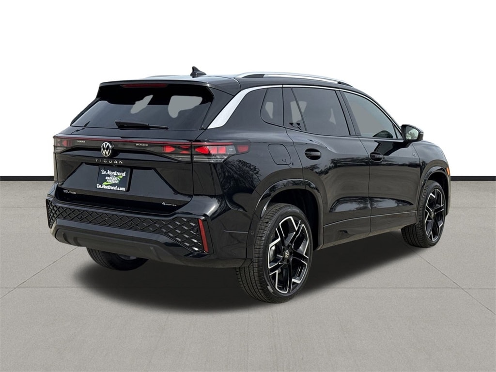 Our sales staff will help you find the vehicle that you've been searching for. We'd be happy to answer any questions that you may have. Stop by our dealership or give us a call for more information. This Tiguan 2.0T SEL R-Line Turbo is nicely equipped with AWD, 12 Speakers, 4-Wheel Disc Brakes, 4-Wheel Independent Suspension, ABS brakes, Air Conditioning, Alloy wheels, AM/FM radio: SiriusXM with 360L, Auto High-beam Headlights, Auto-dimming Rear-View mirror, Automatic temperature control, Brake assist, Bumpers: body-color, Compass, Delay-off headlights, Driver door bin, Driver vanity mirror, Dual front impact airbags, Dual front side impact airbags, Electronic Stability Control, Emergency communication system, Exterior Parking Camera Rear, Four wheel independent suspension, Front anti-roll bar, Front Bucket Seats, Front Center Armrest, Front dual zone A/C, Front fog lights, Front reading lights, Fully automatic headlights, Genuine wood dashboard insert, harman/kardon® Speakers, Heads-Up Display, Heated and Actively Ventilated Front Seats, Heated door mirrors, Heated front seats, Heated rear seats, Heated steering wheel, Illuminated entry, Knee airbag, Leather Shift Knob, Leather steering wheel, Low tire pressure warning, Memory seat, Navigation System, Occupant sensing airbag, Outside temperature display, Overhead airbag, Overhead console, Panic alarm, Passenger door bin, Passenger vanity mirror, Perforated Varenna Leather Seating Surfaces, Power door mirrors, Power driver seat, Power Liftgate, Power moonroof: Panoramic, Power passenger seat, Power steering, Power windows, Radio data system, Radio: MIB4 Discover Media Touchscreen Navigation with AM/FM, Rain sensing wipers, Rear air conditioning, Rear anti-roll bar, Rear reading lights, Rear seat center armrest, Rear side impact airbag, Rear window defroster, Rear window wiper, Remote keyless entry, Security system, Speed control, Speed-sensing steering, Split folding rear seat, Spoiler, Sport steering wheel, Steering wheel mounted audio controls, Tachometer, Telescoping steering wheel, Tilt steering wheel, Traction control, Trip computer, Turn signal indicator mirrors, Variably intermittent wipers, Ventilated front seats, and Wheels: 20" 2-Tone Machined Alloy. 2026 Volkswagen Tiguan 2.0T SEL R-Line Turbo 4D Sport Utility Black Price includes: $500 - Customer Bonus. Exp. 03/02/2026