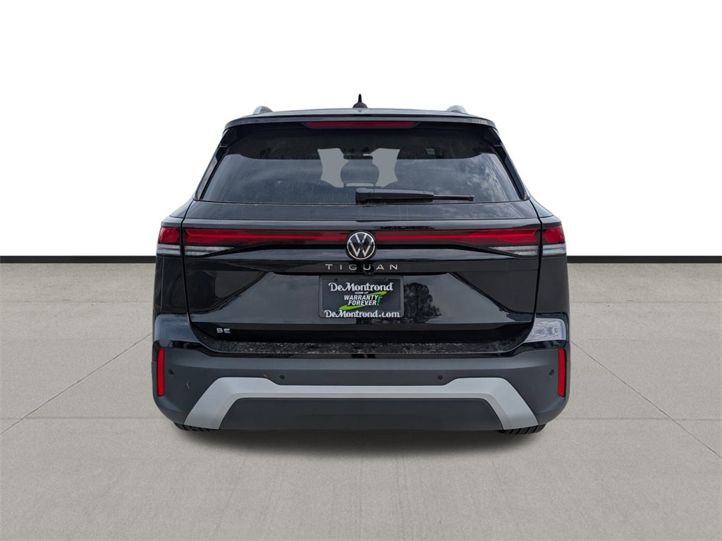 Our sales staff will help you find the vehicle that you've been searching for. We'd be happy to answer any questions that you may have. Stop by our dealership or give us a call for more information. This Tiguan 2.0T SE is nicely equipped with 4-Wheel Disc Brakes, 4-Wheel Independent Suspension, 7 Speakers, ABS brakes, Air Conditioning, Alloy wheels, AM/FM radio: SiriusXM with 360L, Auto High-beam Headlights, Auto-dimming Rear-View mirror, Automatic temperature control, Brake assist, Bumpers: body-color, Compass, Delay-off headlights, Driver door bin, Driver vanity mirror, Dual front impact airbags, Dual front side impact airbags, Electronic Stability Control, Emergency communication system, Exterior Parking Camera Rear, Four wheel independent suspension, Front anti-roll bar, Front Bucket Seats, Front Center Armrest, Front dual zone A/C, Front reading lights, Fully automatic headlights, Heated door mirrors, Heated Front Seats, Heated front seats, Illuminated entry, Knee airbag, Leather Shift Knob, Low tire pressure warning, Occupant sensing airbag, Outside temperature display, Overhead airbag, Overhead console, Panic alarm, Passenger door bin, Passenger vanity mirror, Perforated V-Tex Leatherette Seating Surfaces, Power door mirrors, Power driver seat, Power Liftgate, Power steering, Power windows, Radio data system, Radio: MIB4 Composition Media Touchscreen with AM/FM, Rain sensing wipers, Rear anti-roll bar, Rear reading lights, Rear seat center armrest, Rear side impact airbag, Rear window defroster, Rear window wiper, Remote keyless entry, Security system, Speed control, Speed-sensing steering, Split folding rear seat, Spoiler, Steering wheel mounted audio controls, Tachometer, Telescoping steering wheel, Tilt steering wheel, Traction control, Trip computer, Turn signal indicator mirrors, Variably intermittent wipers, and Wheels: 19" 2-Tone Machined Alloy. 2026 Volkswagen Tiguan 2.0T SE 4D Sport Utility Black 25/32 City/Highway MPG Price includes: $1000 - Retail Customer Bonus. Exp. 02/02/2026