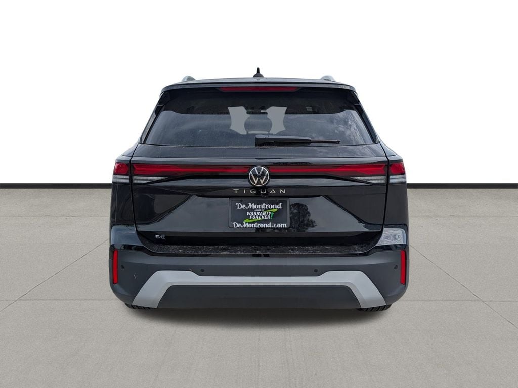 Our sales staff will help you find the vehicle that you've been searching for. We'd be happy to answer any questions that you may have. Stop by our dealership or give us a call for more information. This Tiguan 2.0T SE is nicely equipped with 4-Wheel Disc Brakes, 4-Wheel Independent Suspension, 7 Speakers, ABS brakes, Air Conditioning, Alloy wheels, AM/FM radio: SiriusXM with 360L, Auto High-beam Headlights, Auto-dimming Rear-View mirror, Automatic temperature control, Brake assist, Bumpers: body-color, Compass, Delay-off headlights, Driver door bin, Driver vanity mirror, Dual front impact airbags, Dual front side impact airbags, Electronic Stability Control, Emergency communication system, Exterior Parking Camera Rear, Four wheel independent suspension, Front anti-roll bar, Front Bucket Seats, Front Center Armrest, Front dual zone A/C, Front reading lights, Fully automatic headlights, Heated door mirrors, Heated Front Seats, Heated front seats, Illuminated entry, Knee airbag, Leather Shift Knob, Low tire pressure warning, Occupant sensing airbag, Outside temperature display, Overhead airbag, Overhead console, Panic alarm, Passenger door bin, Passenger vanity mirror, Perforated V-Tex Leatherette Seating Surfaces, Power door mirrors, Power driver seat, Power Liftgate, Power steering, Power windows, Radio data system, Radio: MIB4 Composition Media Touchscreen with AM/FM, Rain sensing wipers, Rear anti-roll bar, Rear reading lights, Rear seat center armrest, Rear side impact airbag, Rear window defroster, Rear window wiper, Remote keyless entry, Security system, Speed control, Speed-sensing steering, Split folding rear seat, Spoiler, Steering wheel mounted audio controls, Tachometer, Telescoping steering wheel, Tilt steering wheel, Traction control, Trip computer, Turn signal indicator mirrors, Variably intermittent wipers, and Wheels: 19" 2-Tone Machined Alloy. 2026 Volkswagen Tiguan 2.0T SE 4D Sport Utility Black 25/32 City/Highway MPG Price includes: $1000 - Customer Bonus. Exp. 04/30/2026