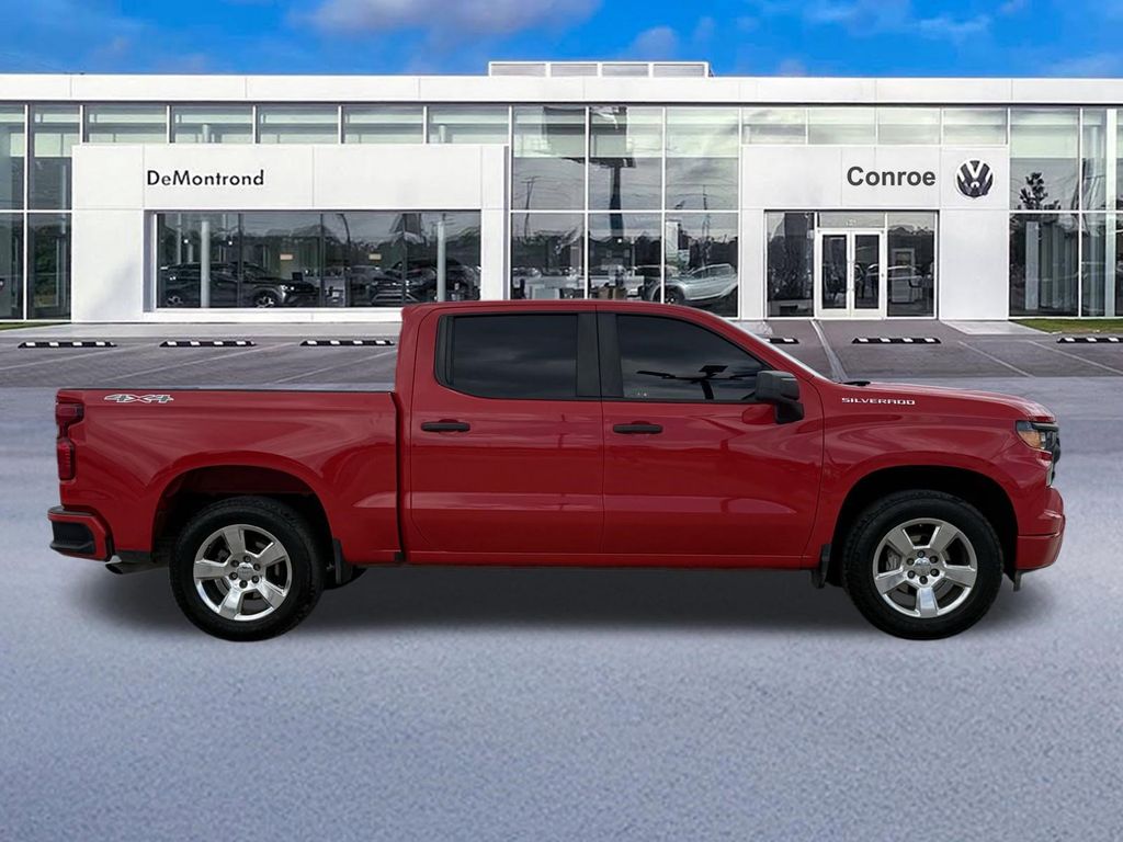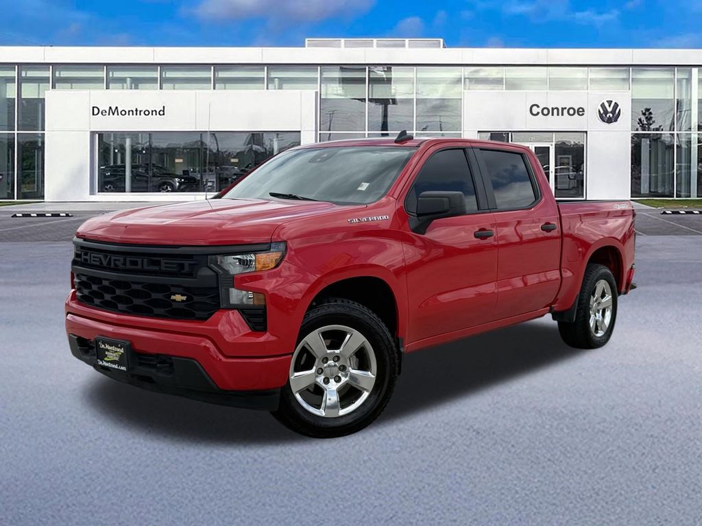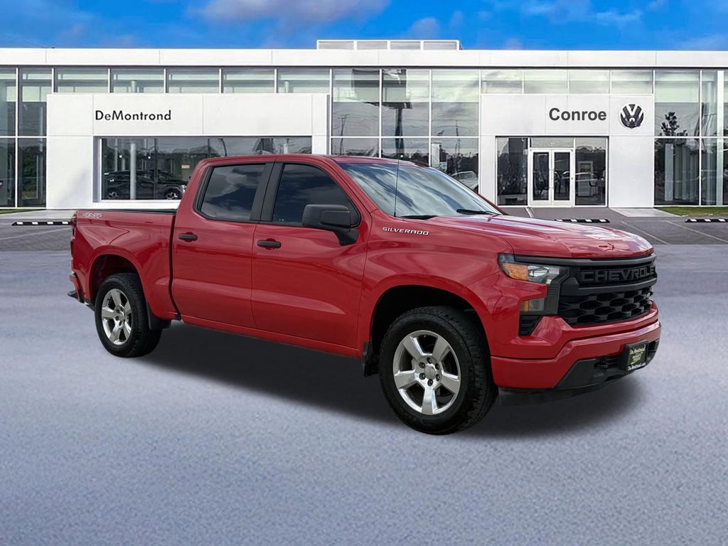 Red 2023 Chevrolet Silverado 1500 Custom Custom Clean CARFAX. CARFAX One-Owner. 8-Speed Automatic, 4WD, Jet Black w/Cloth Seat Trim.