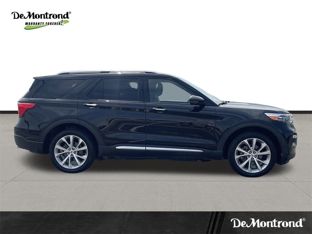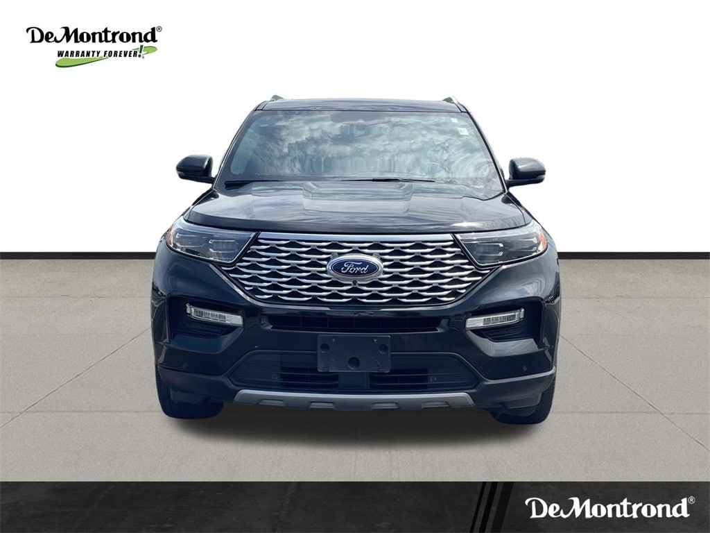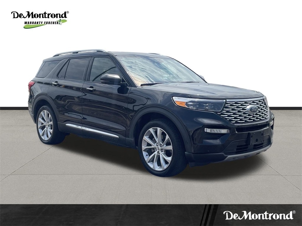 Our sales staff will help you find the vehicle that you've been searching for. We'd be happy to answer any questions that you may have. Stop by our dealership or give us a call for more information. This Explorer Platinum is nicely equipped with Class IV Trailer Tow Package, Equipment Group 601A, 4WD, 12 Speakers, 1st Row Heated Seats, 3rd row seats: bench, 4-Wheel Disc Brakes, ABS brakes, Air Conditioning, Alloy wheels, AM/FM radio: SiriusXM, Auto High-beam Headlights, Auto-dimming door mirrors, Auto-dimming Rear-View mirror, Automatic temperature control, Brake assist, Bumpers: body-color, Compass, Delay-off headlights, Driver door bin, Driver vanity mirror, Dual front impact airbags, Dual front side impact airbags, Electronic Stability Control, Emergency communication system: SYNC 3 911 Assist, Exterior Parking Camera Rear, FordPass Connect, Four wheel independent suspension, Front anti-roll bar, Front Bucket Seats, Front Center Armrest, Front dual zone A/C, Front fog lights, Front reading lights, Fully automatic headlights, Garage door transmitter, Genuine wood dashboard insert, Heated door mirrors, Heated front seats, Heated rear seats, Heated steering wheel, Illuminated entry, Knee airbag, Leather Htd/Ventilated Sport Captain's Chairs, Leather steering wheel, Low tire pressure warning, Memory seat, Navigation System, Occupant sensing airbag, Outside temperature display, Overhead airbag, Overhead console, Panic alarm, Passenger door bin, Passenger vanity mirror, Power door mirrors, Power driver seat, Power Liftgate, Power passenger seat, Power steering, Power windows, Radio data system, Radio: B&O Sound System by Bang & Olufsen, Rain sensing wipers, Rear air conditioning, Rear anti-roll bar, Rear Auxiliary Controls Credit, Rear reading lights, Rear window defroster, Rear window wiper, Remote keyless entry, Roof rack: rails only, Security system, Speed control, Speed-sensing steering, Speed-Sensitive Wipers, Split folding rear seat, Spoiler, Steering wheel memory, Steering wheel mounted audio controls, SYNC 3 Communications & Entertainment System, SYNC 3/Apple CarPlay/Android Auto, Tachometer, Telescoping steering wheel, Tilt steering wheel, Traction control, Trip computer, Turn signal indicator mirrors, Twin Panel Moonroof, Variably intermittent wipers, Ventilated front seats, Voice-Activated Touchscreen Navigation System, and Wheels: 21" Bright Machined-Face Aluminum.