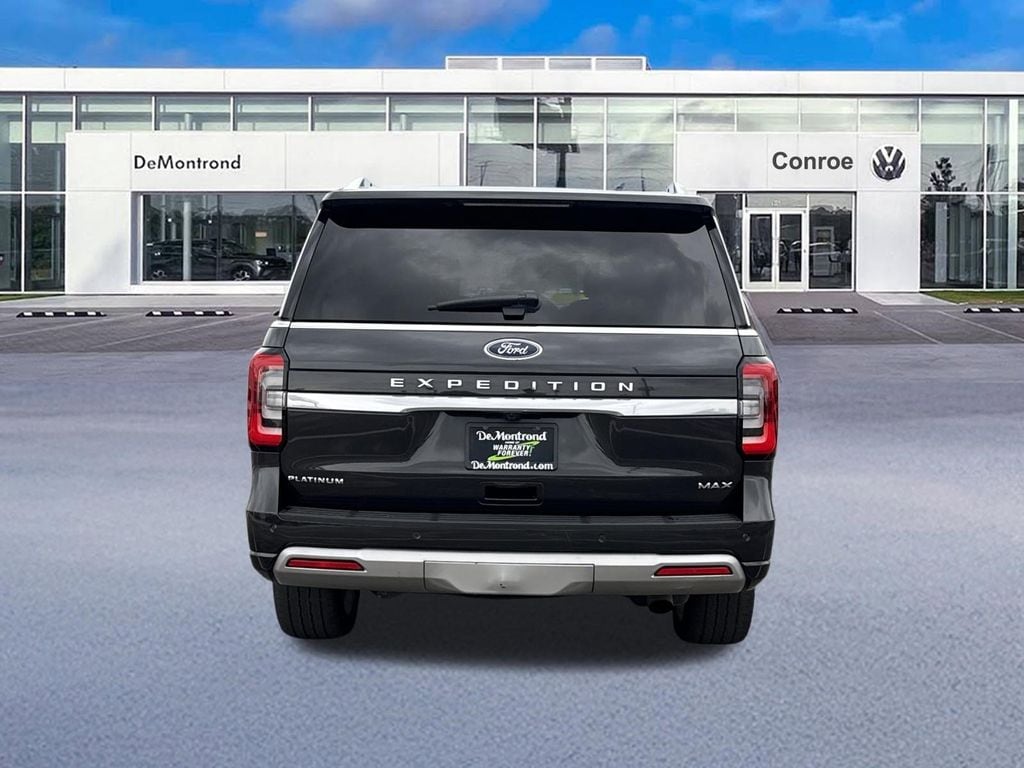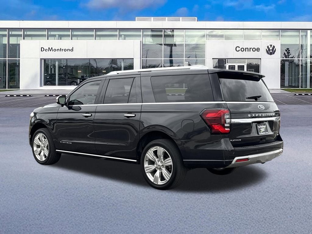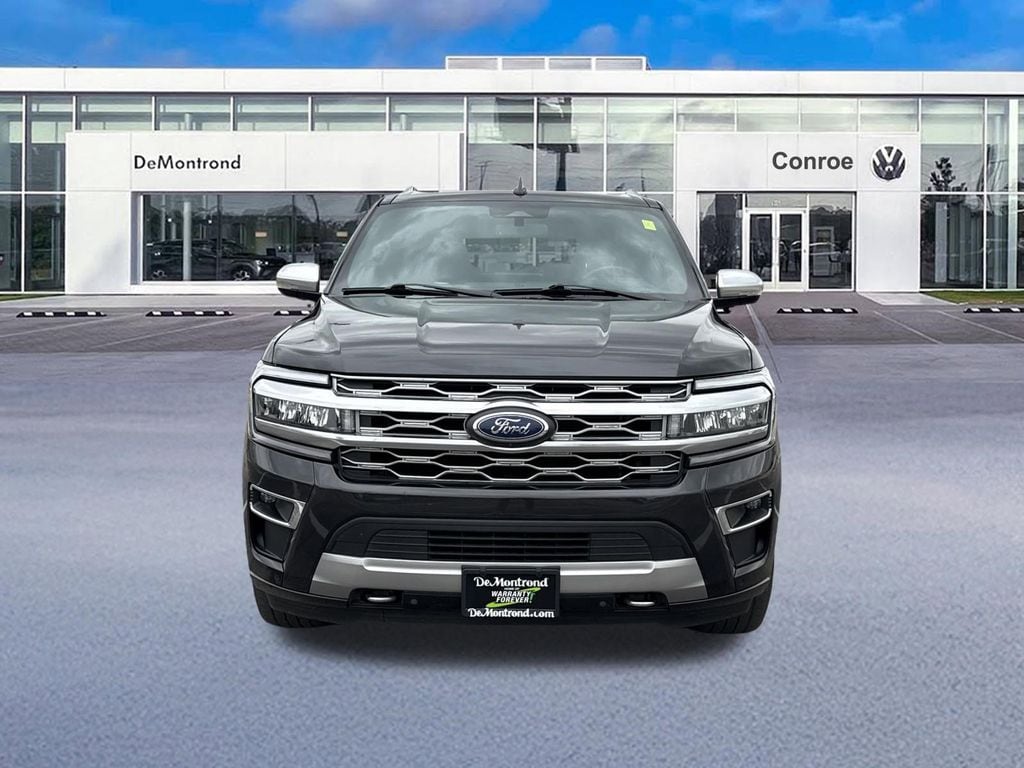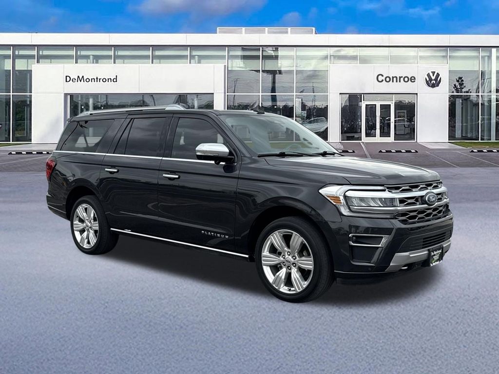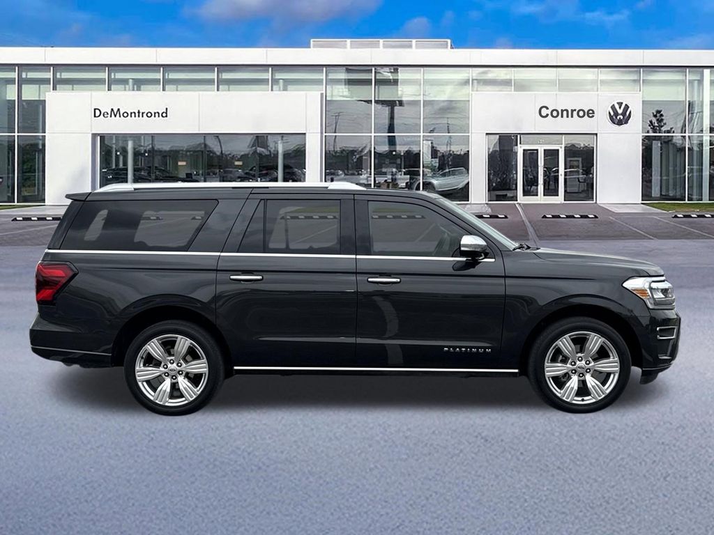 Our sales staff will help you find the vehicle that you've been searching for. We'd be happy to answer any questions that you may have. Stop by our dealership or give us a call for more information. This Expedition Max Platinum is nicely equipped with Equipment Group 600A Standard Package, Heavy-Duty Trailer Tow Package (26mm Engine Radiator, 360-Degree Camera w/Trailer Reverse Guidance, Integrated Trailer Brake Controller, and Pro Trailer Backup Assist), 22 Speakers, 3rd row seats: split-bench, 4-Wheel Disc Brakes, ABS brakes, Active Park Assist 2.0 Removal, Adaptive suspension, Adjustable pedals, Air Conditioning, Alloy wheels, AM/FM radio: SiriusXM with 360L, Auto High-beam Headlights, Auto-dimming door mirrors, Auto-dimming Rear-View mirror, Automatic temperature control, Brake assist, Bumpers: body-color, Compass, Continuous Controlled Damping (CCD), Delay-off headlights, Driver door bin, Driver vanity mirror, Dual front impact airbags, Dual front side impact airbags, Electronic Stability Control, Emergency communication system: SYNC 4 911 Assist, Exterior Parking Camera Rear, Four wheel independent suspension, Front anti-roll bar, Front Bucket Seats, Front Center Armrest, Front dual zone A/C, Front fog lights, Front reading lights, Fully automatic headlights, Garage door transmitter, Genuine wood console insert, Genuine wood dashboard insert, Genuine wood door panel insert, Hands-Free Foot-Activated Liftgate Removal (DISC), Heated door mirrors, Heated front seats, Heated rear seats, Heated steering wheel, Htd/Ventilated Prem Lthr Front Captain's Chairs (DISC), Illuminated entry, Leather steering wheel, Low tire pressure warning, Memory seat, Navigation system: Connected Navigation, Occupant sensing airbag, Outside temperature display, Overhead airbag, Overhead console, Panic alarm, Passenger door bin, Passenger vanity mirror, Pedal memory, Power door mirrors, Power driver seat, Power Liftgate, Power moonroof, Power passenger seat, Power steering, Power windows, Radio data system, Radio: B&O Unleashed Sound System by Bang & Olufsen, Rain sensing wipers, Rear air conditioning, Rear anti-roll bar, Rear audio controls, Rear reading lights, Rear window defroster, Rear window wiper, Reclining 3rd row seat, Remote keyless entry, Second Row Power Windows Removal, Security system, SiriusXM w/360L, Speed control, Speed-sensing steering, Speed-Sensitive Wipers, Split folding rear seat, Spoiler, Steering wheel memory, Steering wheel mounted audio controls, SYNC 4 w/Enhanced Voice Recognition, Tachometer, Telescoping steering wheel, Tilt steering wheel, Traction control, Trip computer, Turn signal indicator mirrors, Variably intermittent wipers, Ventilated front seats, Voltmeter, Wheels: 22" 12-Spoke Polished Aluminum, and Wheels: 22" 6-Spoke Polished Aluminum.