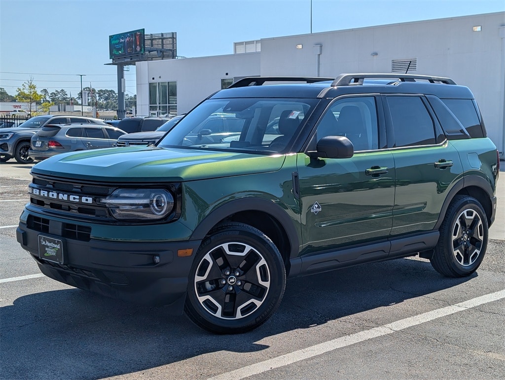 Our sales staff will help you find the vehicle that you've been searching for. We'd be happy to answer any questions that you may have. Stop by our dealership or give us a call for more information. This Bronco Sport Outer Banks is nicely equipped with Equipment Group 300A, Ford Co-Pilot360 Assist+ (Evasive Steering Assist, Intelligent Adaptive Cruise Control w/Stop & Go, and Voice-Activated Touchscreen Navigation System), Tech Package (HD Radio, Universal Garage Door Opener (UGDO), and Wireless Charging Pad), 3.80 Axle Ratio, 4-Wheel Disc Brakes, 6 Speakers, ABS brakes, Air Conditioning, Alloy wheels, AM/FM radio: SiriusXM, AM/FM Stereo, Auto High-beam Headlights, Auto-dimming Rear-View mirror, Automatic temperature control, Brake assist, Cargo Management System, Compass, Delay-off headlights, Driver door bin, Driver vanity mirror, Dual front impact airbags, Dual front side impact airbags, Electronic Stability Control, Emergency communication system: SYNC 3 911 Assist, Four wheel independent suspension, Front & Rear Floor Liners w/o Carpet Mats, Front anti-roll bar, Front Bucket Seats, Front Center Armrest, Front dual zone A/C, Front fog lights, Front License Plate Bracket, Front reading lights, Fully automatic headlights, Heated door mirrors, Heated front seats, Heated steering wheel, Illuminated entry, Knee airbag, Low tire pressure warning, Memory seat, Occupant sensing airbag, Outside temperature display, Overhead airbag, Overhead console, Panic alarm, Passenger door bin, Passenger vanity mirror, Power door mirrors, Power driver seat, Power Moonroof, Power passenger seat, Power steering, Power windows, Premium-Trimmed Heated Sport Contour Bucket Seats, Radio data system, Rain sensing wipers, Rear anti-roll bar, Rear Parking Sensors, Rear reading lights, Rear seat center armrest, Rear window defroster, Rear window wiper, Remote keyless entry, Security system, SiriusXM, Speed control, Speed-sensing steering, Speed-Sensitive Wipers, Split folding rear seat, Steering wheel mounted audio controls, SYNC 3 Communications & Entertainment System, Tachometer, Telescoping steering wheel, Tilt steering wheel, Traction control, Trip computer, Variably intermittent wipers, and Wheels: 18" Ebony Black-Painted Aluminum.