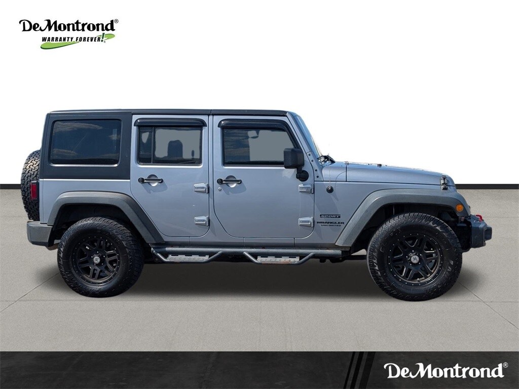 Our sales staff will help you find the vehicle that you've been searching for. We'd be happy to answer any questions that you may have. Stop by our dealership or give us a call for more information. This Wrangler Unlimited Sport is nicely equipped with Connectivity Group (Chrome/Leather Wrapped Shift Knob, Leather Wrapped Steering Wheel, Remote USB Port, Tire Pressure Monitoring Display, Uconnect Voice Command w/Bluetooth, and Vehicle Information Center), Quick Order Package 24S (17" x 7.5" Aluminum Wheels, Auto-Dimming Mirror w/Reading Lamp, and Deep Tint Sunscreen Windows), Trailer Tow Group (Class II Receiver Hitch and Trailer Tow w/4-Pin Connector Wiring), 1-Year SiriusXM Radio Service, 16" x 7.0" Luxury Styled Steel Wheels, 3.21 Rear Axle Ratio, 4-Wheel Disc Brakes, 6 Speakers, ABS brakes, Air Conditioning, AM/FM radio, Black 3-Piece Hard Top, Brake assist, CD player, Cloth Bucket Seats, Compass, Driver door bin, Driver vanity mirror, Dual front impact airbags, Electronic Stability Control, Freedom Panel Storage Bag, Front 1-Touch Down Power Windows, Front anti-roll bar, Front Bucket Seats, Front Center Armrest w/Storage, Front fog lights, Integrated roll-over protection, Low tire pressure warning, Normal Duty Suspension, Occupant sensing airbag, Outside temperature display, Passenger door bin, Passenger vanity mirror, Power Heated Mirrors, Power Locks, Power steering, Radio: Uconnect 130 AM/FM/CD/MP3, Rear anti-roll bar, Rear Window Defroster, Rear Window Wiper/Washer, Remote Keyless Entry, Security Alarm, SIRIUS Satellite Radio, Speed control, Split folding rear seat, Steering wheel mounted audio controls, Sunrider Soft Top, Tachometer, Tilt steering wheel, Tinted Rear Quarter & Liftgate Windows, Traction control, Trip computer, and Variably intermittent wipers.
