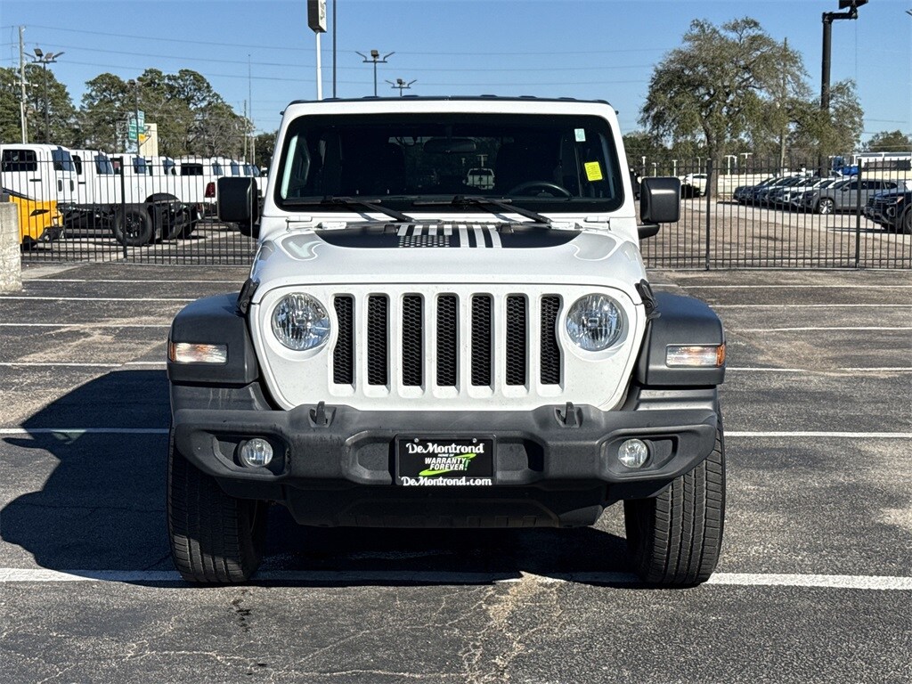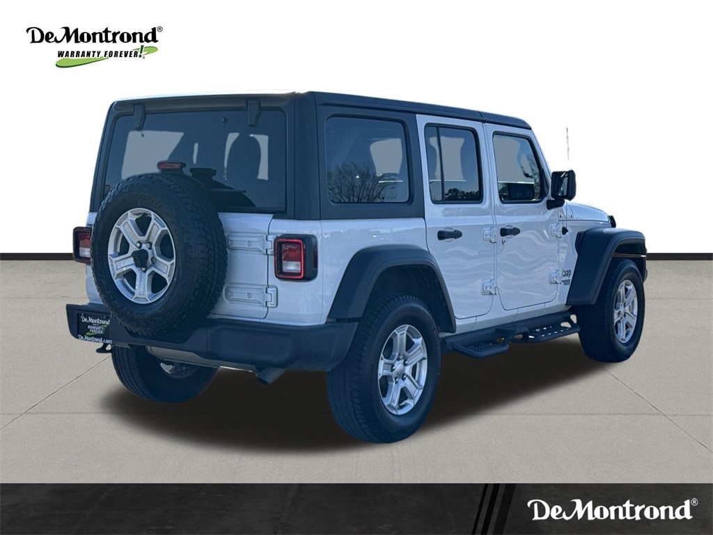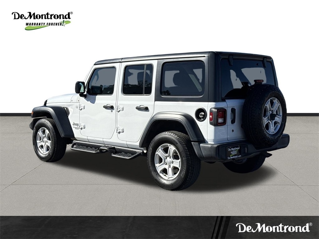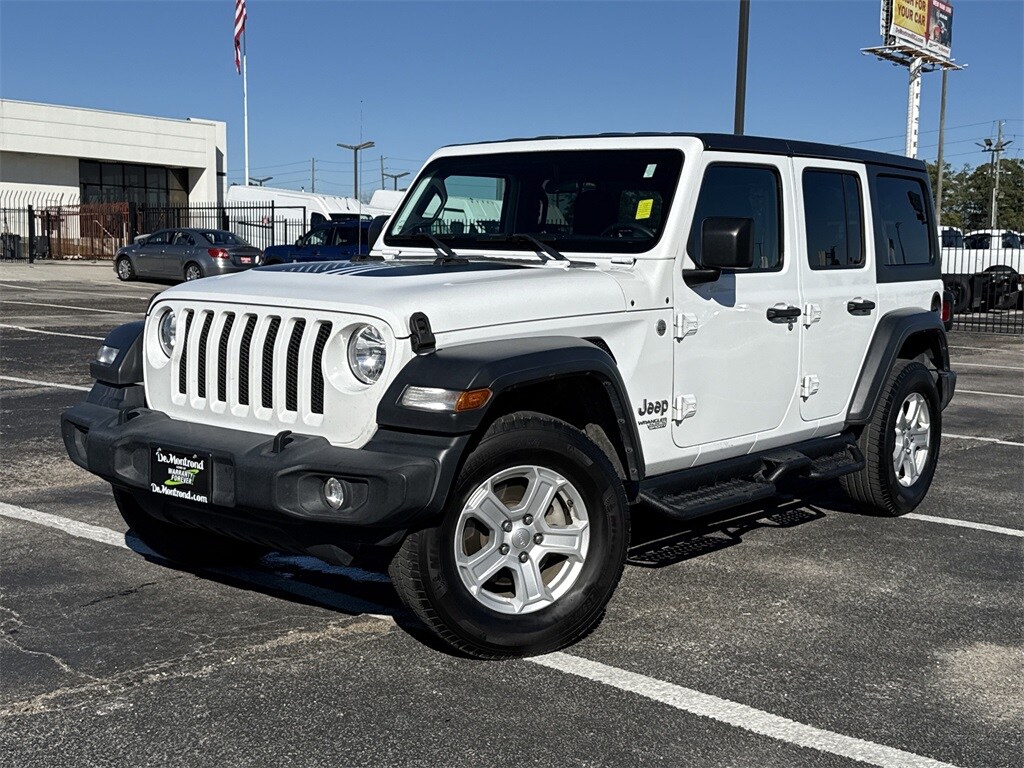 Our sales staff will help you find the vehicle that you've been searching for. We'd be happy to answer any questions that you may have. Stop by our dealership or give us a call for more information. This Wrangler Unlimited Sport S is nicely equipped with Convenience Group (Universal Garage Door Opener), Quick Order Package 24S Sport S (Automatic Headlamps, Deep Tint Sunscreen Windows, Front 1-Touch Down Power Windows, Leather Wrapped Steering Wheel, Power Heated Mirrors, Remote Keyless Entry, Security Alarm, Speed Sensitive Power Locks, Sun Visors w/Illuminated Vanity Mirrors, and Wheels: 17" x 7.5" Tech Silver Aluminum), Technology Group (1-Yr SiriusXM Radio Service, 7.0" Touchscreen Display, Air Conditioning w/Auto Temperature Control, Air Filtering, Apple CarPlay, Cluster 7.0" TFT Color Display, For More Info, Call 800-643-2112, Google Android Auto, GPS Antenna Input, Integrated Center Stack Radio, Radio: Uconnect 4 w/7" Display, SiriusXM Satellite Radio, and USB Host Flip), 21.5 Gallon Fuel Tank (DISC), 3.45 Rear Axle Ratio, 4-Wheel Disc Brakes, 8 Speakers, ABS brakes, Air Conditioning, AM/FM radio, Anti-Spin Differential Rear Axle, Black 3-Piece Hard Top, Brake assist, Bridgestone Brand Tires, Cloth Low-Back Bucket Seats, Compass, Delay-off headlights, Driver door bin, Driver vanity mirror, Dual front impact airbags, Dual front side impact airbags, Electronic Stability Control, Freedom Panel Storage Bag, Front anti-roll bar, Front Bucket Seats, Front Center Armrest w/Storage, Front fog lights, Front reading lights, Integrated roll-over protection, Low tire pressure warning, Manufacturer's Statement of Origin (DISC), MOPAR All-Weather Floor Mats, MOPAR American Flag Hood Graphic, Non-Lock Fuel Cap w/o Discriminator, Normal Duty Suspension, Occupant sensing airbag, Outside temperature display, ParkView Rear Back-Up Camera, Passenger door bin, Passenger vanity mirror, Power steering, Radio data system, Radio: Uconnect 3 w/5" Display, Rear anti-roll bar, Rear reading lights, Rear Window Defroster, Rear Window Wiper/Washer, Speed control, Split folding rear seat, Steering wheel mounted audio controls, Tachometer, Telescoping steering wheel, Tilt steering wheel, Traction control, Trip computer, Variably intermittent wipers, and Wheels: 17" x 7.5" Black Steel Styled.