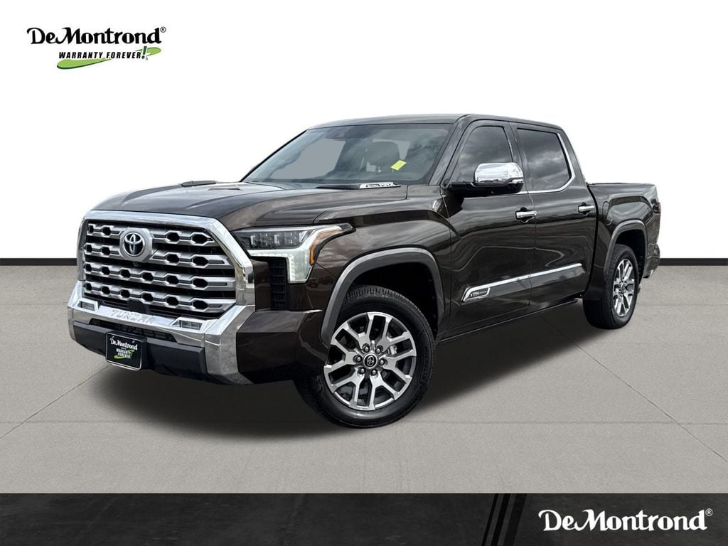 Our sales staff will help you find the vehicle that you've been searching for. We'd be happy to answer any questions that you may have. Stop by our dealership or give us a call for more information. This Tundra Hybrid 1794 Edition is nicely equipped with 3.4L V6, 12 Speakers, 3.31 Axle Ratio, 4-Wheel Disc Brakes, ABS brakes, Air Conditioning, Alloy wheels, AM/FM radio: SiriusXM, Apple CarPlay/Android Auto, Auto High-beam Headlights, Auto-dimming door mirrors, Auto-dimming Rear-View mirror, Automatic temperature control, Brake assist, Bumpers: body-color, Chrome Exhaust Tail Pipe & Diffuser, Delay-off headlights, Driver door bin, Driver vanity mirror, Dual front impact airbags, Dual front side impact airbags, Electronic Stability Control, Emergency communication system: Safety Connect with 1-year trial, Front anti-roll bar, Front Bucket Seats, Front Center Armrest, Front dual zone A/C, Front fog lights, Front reading lights, Front wheel independent suspension, Fully automatic headlights, Garage door transmitter: HomeLink, Heated & Ventilated Front Bucket Seats, Heated door mirrors, Heated front seats, Heated rear seats, Heated steering wheel, Illuminated entry, Knee airbag, Leather Seat Trim, Leather Shift Knob, Low tire pressure warning, Memory seat, Navigation System, Occupant sensing airbag, Outside temperature display, Overhead airbag, Overhead console, Panic alarm, Passenger door bin, Passenger vanity mirror, Power door mirrors, Power driver seat, Power moonroof, Power passenger seat, Power steering, Power windows, Radio data system, Radio: Premium Audio w/JBL, Rain sensing wipers, Rear reading lights, Rear seat center armrest, Rear step bumper, Rear window defroster, Remote keyless entry, Security system, Speed control, Speed-sensing steering, Split folding rear seat, Steering wheel memory, Steering wheel mounted audio controls, Tachometer, Telescoping steering wheel, Tilt steering wheel, Traction control, Trip computer, Turn signal indicator mirrors, Variably intermittent wipers, Ventilated front seats, Ventilated rear seats, Voltmeter, and Wheels: 20" x 8" Machined-Finish Alloy.